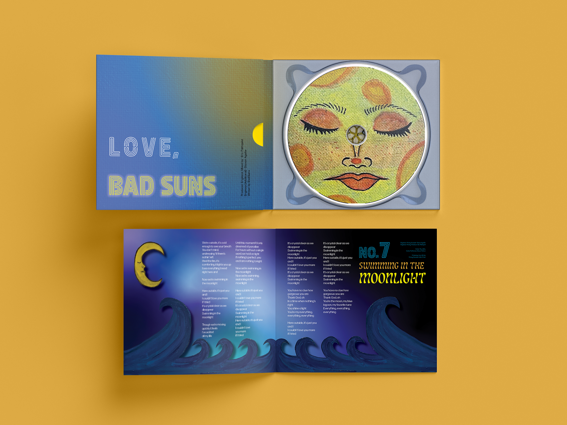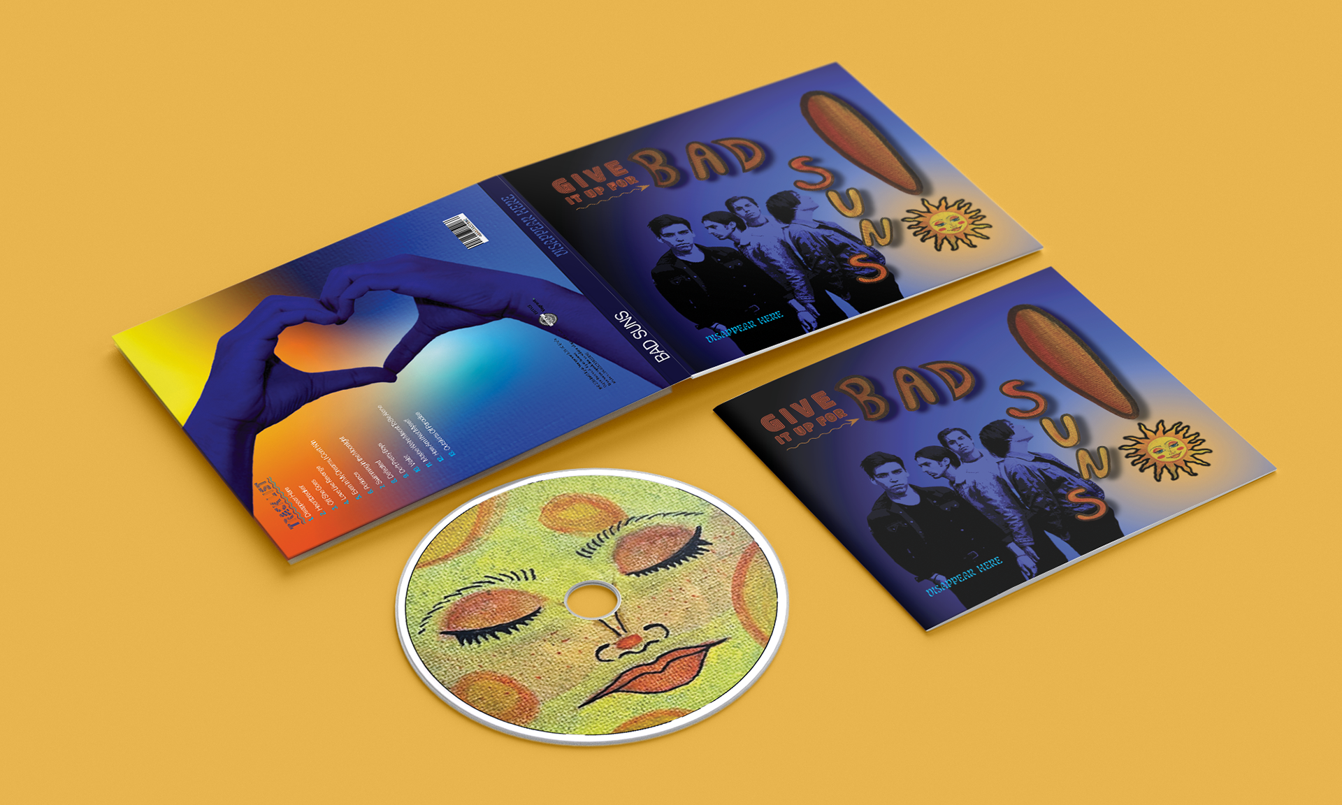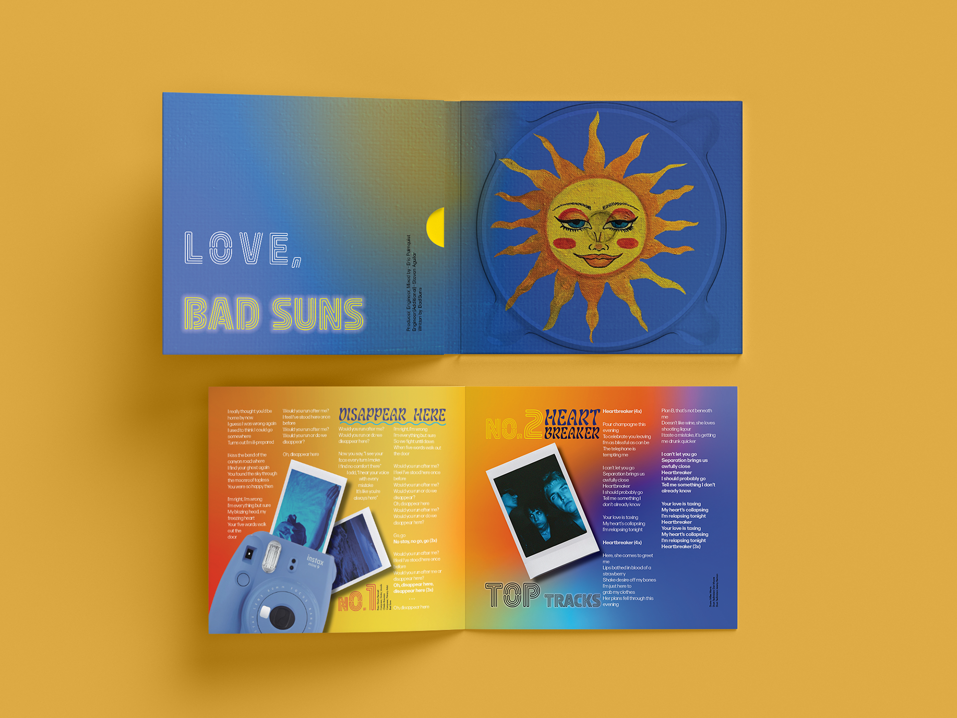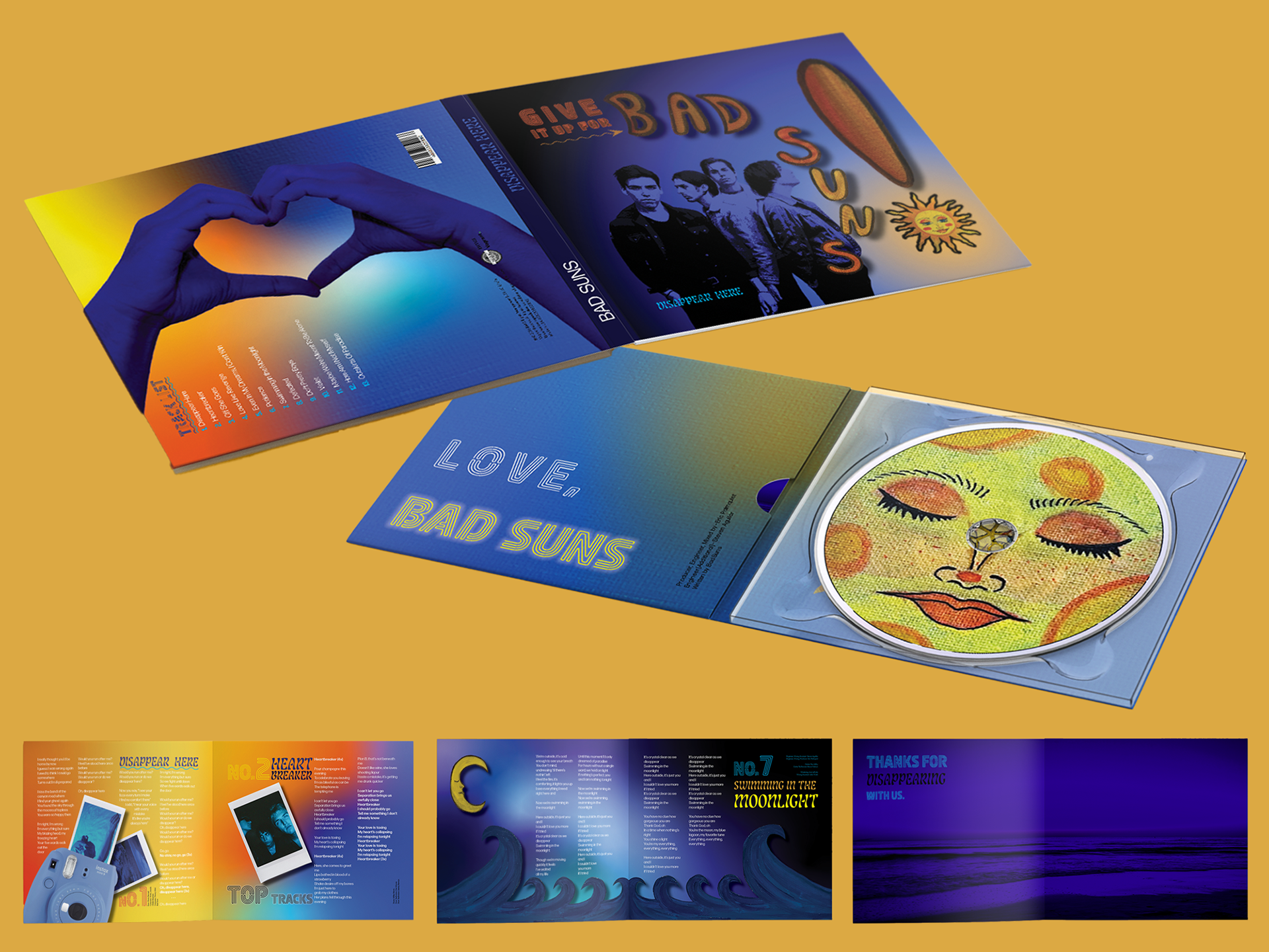 As part of my Publication Design class, I was tasked with redesigning an existing album. I chose Disappear Here by Bad Suns. I was heavily inspired by the album’s beachy, indie energy. My goal was to capture that same vibe through bold typography, vibrant colors, and layered textures. What made this project especially rewarding was the blend of traditional and digital design. I incorporated my own hand-painted imagery to create a warm feeling, then combined it with clean digital elements using InDesign, Illustrator, and Photoshop. This redesign pushed me creatively and reminded me how much I enjoy mixing traditional and digital mediums to tell a visual story.